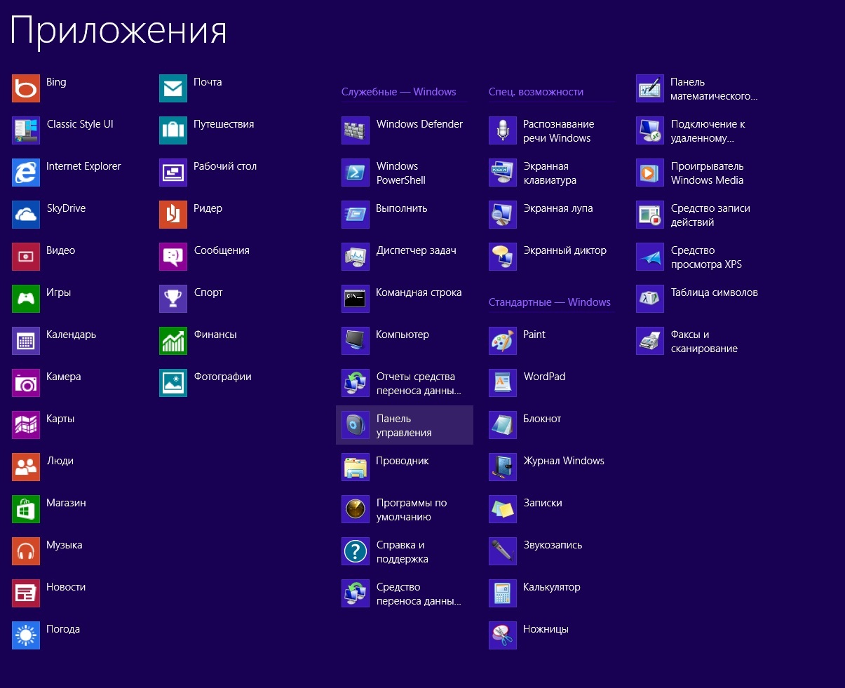 3. В открывшемся перед списке открыть раздел "Панель управления"/"Control Panel"