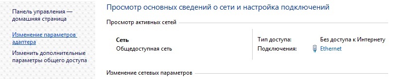 6. Далее в левом столбце выбрать пункт "Изменения параметров адаптера"/"Change adapter settings"