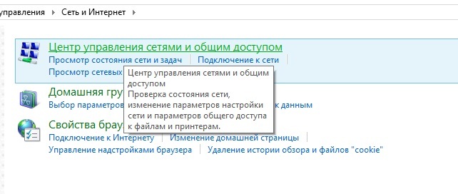 5. Затем выбрать пункт "Центр управления Сетями и Общим Доступом"/"Network and Sharing Center"