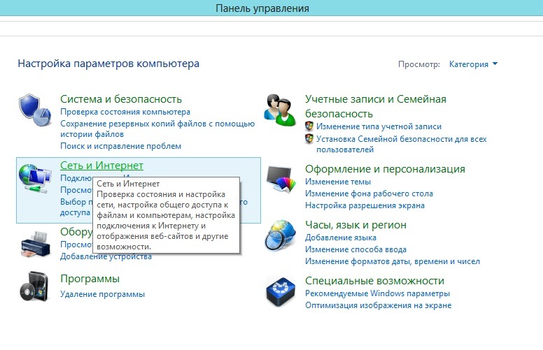 4. В панели управления выбрать - "Сеть и интернет"/"Network and Internet"