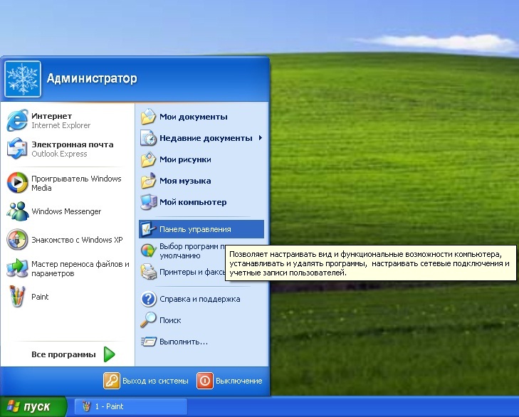 1. На панели задач, выбрать в меню "Пуск" -> "Панель управления"