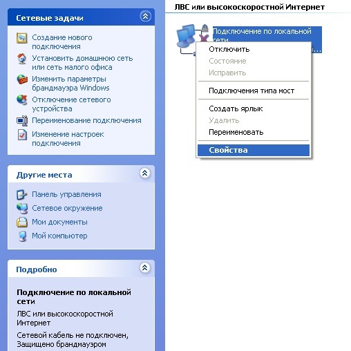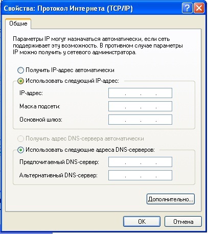 Настройка интернет - OS Windows XP